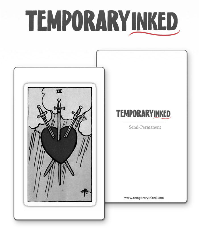 Immerse yourself in the mystical essence of the Three Swords Of Tarot card with this tattoo, showcasing three elegantly designed swords piercing a heart, symbolizing emotional pain, insight, and the transformative power of truth in your journey.