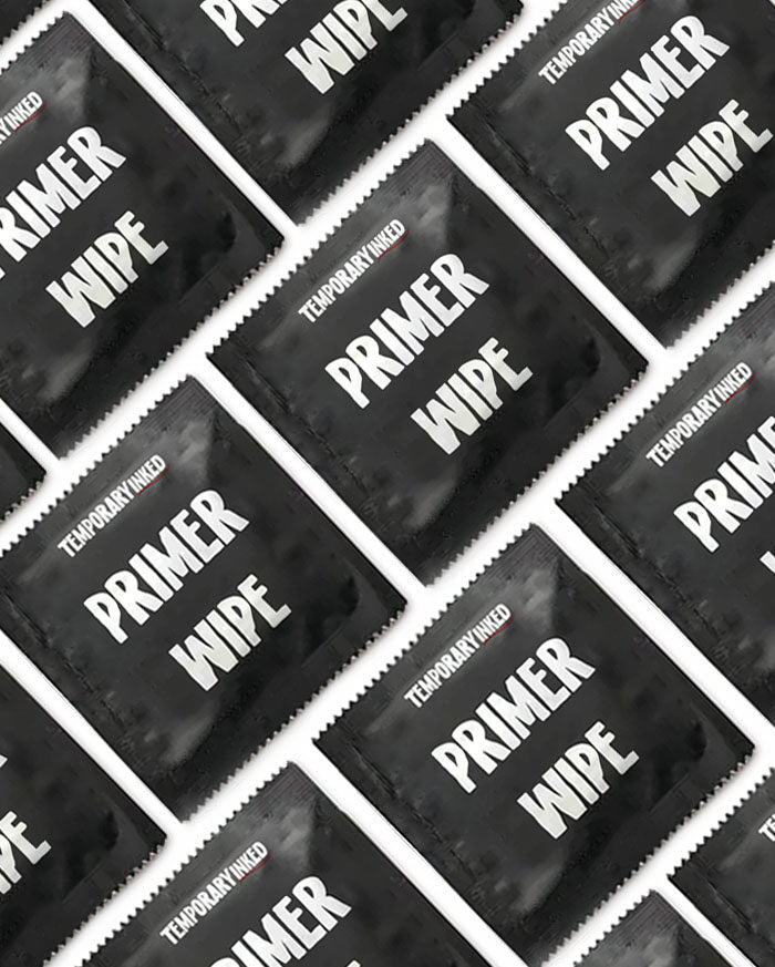 Using the Primer Wipe included with your order, rub the area where you want to place your tattoo for 30 seconds. Allow it to dry completely before moving to next step.