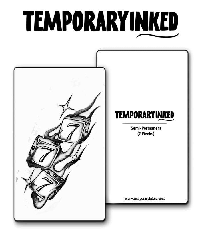 Duration: Our Semi-Permanent Tattoos are designed to last up to 2 weeks, depending on the application area, daily activities, and skin moisture & aftercare.
