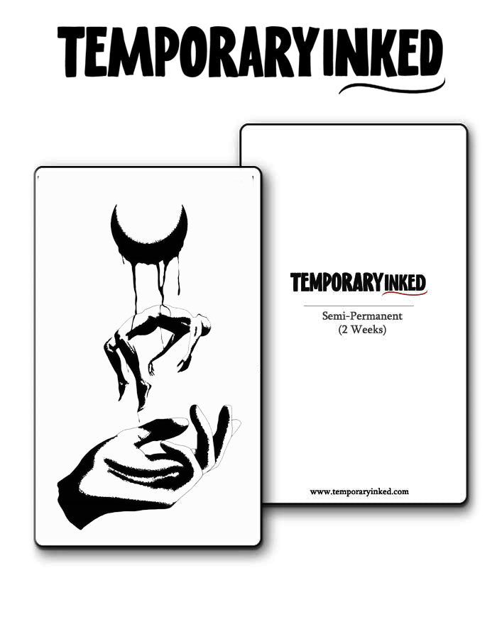 TemporaryInked™ Tattoos are realistic 2-week tattoos that sit on your skin, gradually developing darker over 3–5 days.