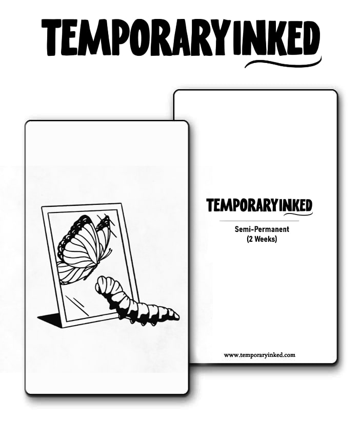 TemporaryInked™ Tattoos are realistic 2-week tattoos that sit on your skin, gradually developing darker over 3–5 days.