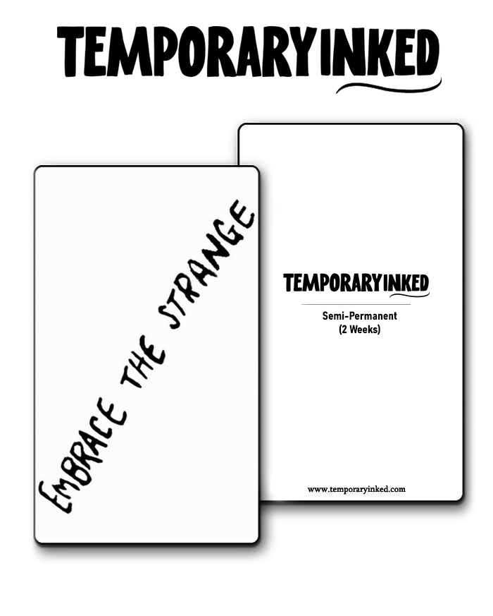 TemporaryInked™ Tattoos are realistic 2-week tattoos that sit on your skin, gradually developing darker over 3–5 days.