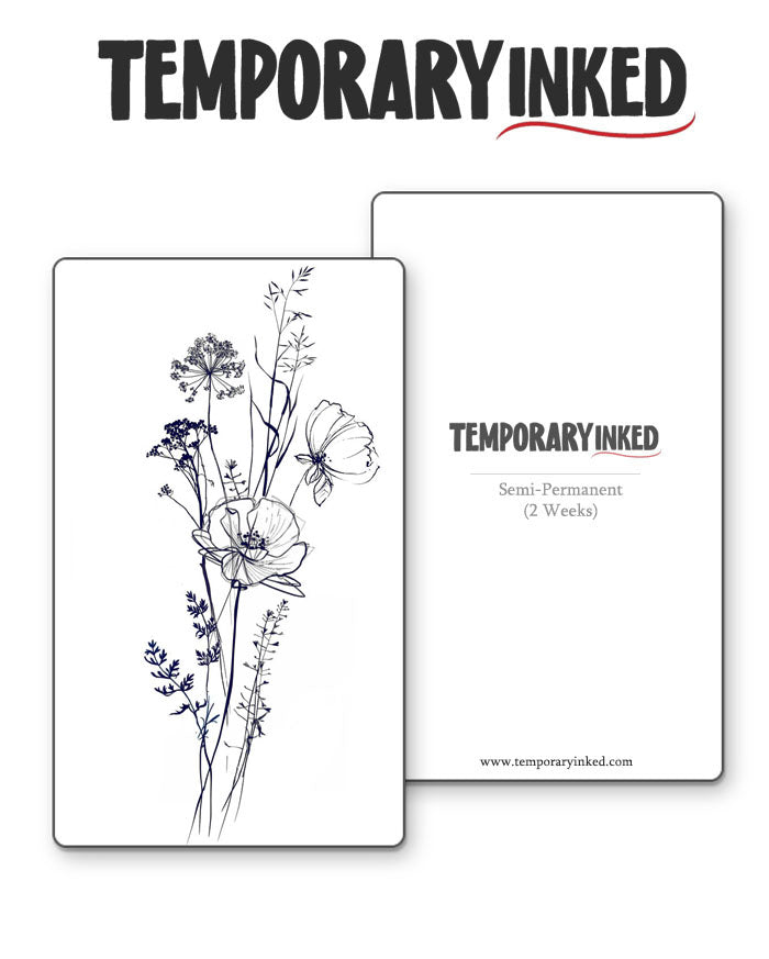 Duration: Our Semi-Permanent Tattoos are designed to last up to 2 weeks, depending on the application area, daily activities, and skin moisture & aftercare.