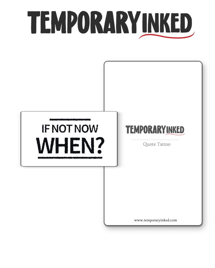 "Do it now or regret it later with the If Not Now, When? tattoo. Carpe diem with this playful and meaningful ink. Don't wait for the perfect moment, create it yourself. Why wait?! (just do it)"