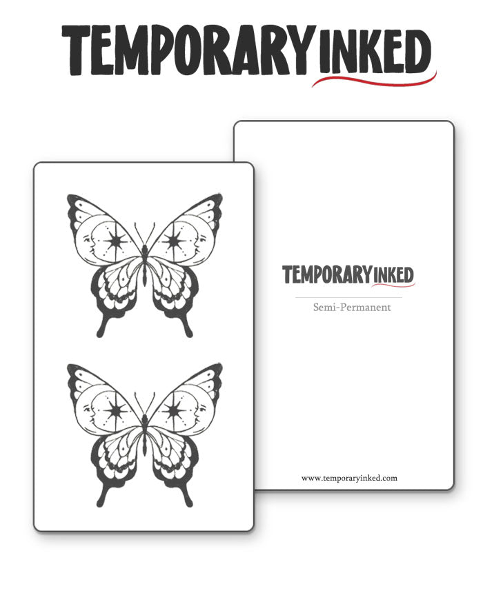 Introducing the Lunar Butterfly Tattoo - A stunning blend of the celestial and the delicate! Embrace your inner mystique with this enchanting moon and butterfly design.