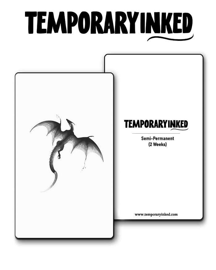 TemporaryInked™ Tattoos are realistic 2-week tattoos that sit on your skin, gradually developing darker over 3–5 days.