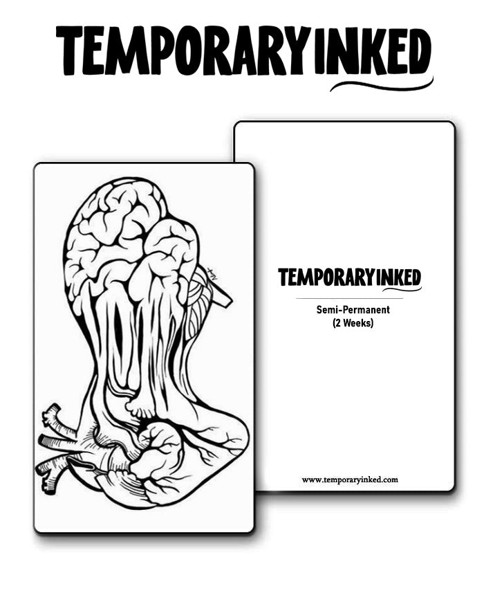 TemporaryInked™ Tattoos are realistic 2-week tattoos that sit on your skin, gradually developing darker over 3–5 days.