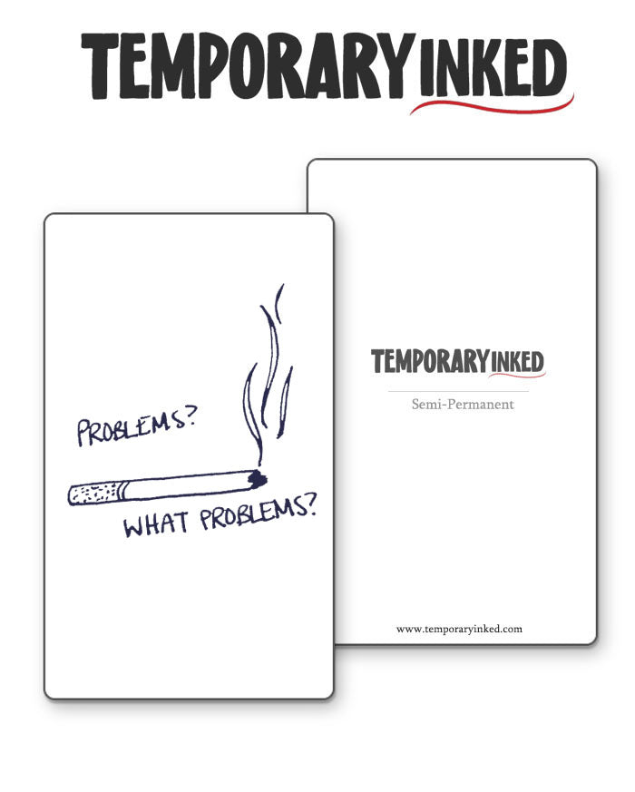Embrace a carefree attitude with the 'Problems? What Problems?' Tattoo, a lighthearted design featuring a smoldering cigarette, symbolizing a laid-back approach to life's challenges.