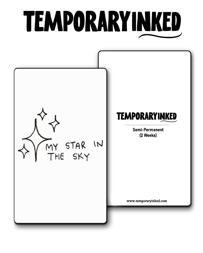 Duration: Our Semi-Permanent Tattoos are designed to last up to 2 weeks, depending on the application area, daily activities, and skin moisture & aftercare.