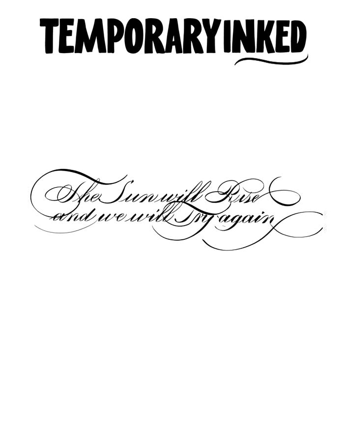 TemporaryInked™ Tattoos are realistic 2-week tattoos that sit on your skin, gradually developing darker over 3–5 days.