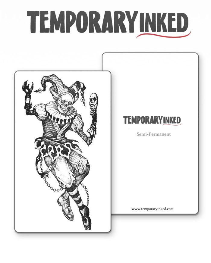 Dare to stand out with The Jester Tattoo! This bold and haunting tattoo design will elevate any look with its intricate details and eerie aesthetic.