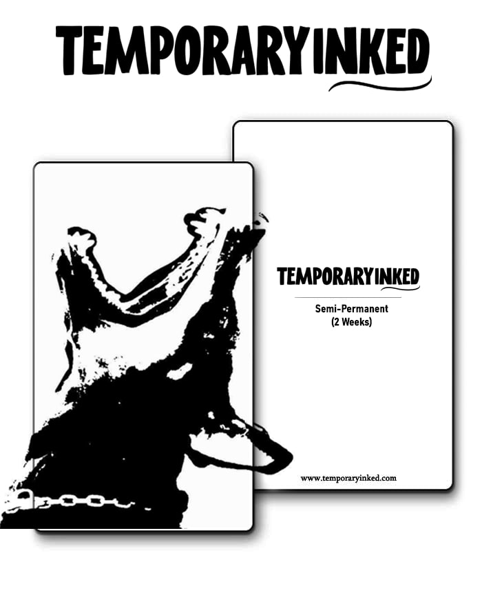 TemporaryInked™ Tattoos are realistic 2-week tattoos that sit on your skin, gradually developing darker over 3–5 days.