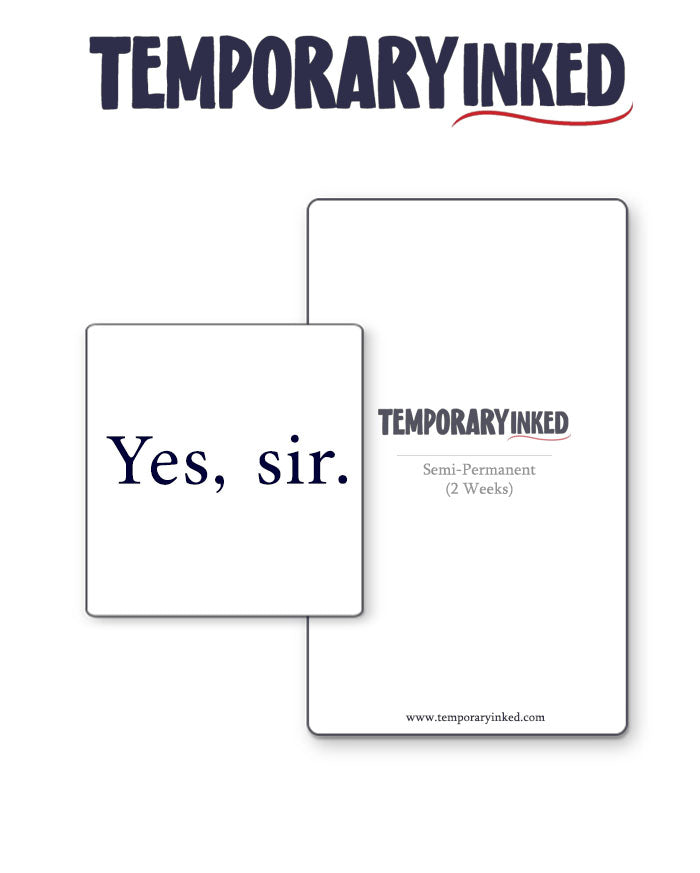 Yes, sir. Tattoo: Embrace your daring side with our 'Yes Sir Tattoo,' a bold expression of confidence and allure, perfect for those who own their desires and aren't afraid to show it.